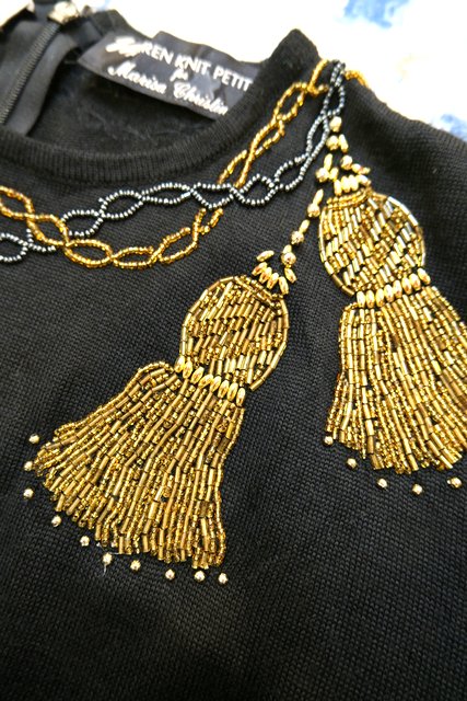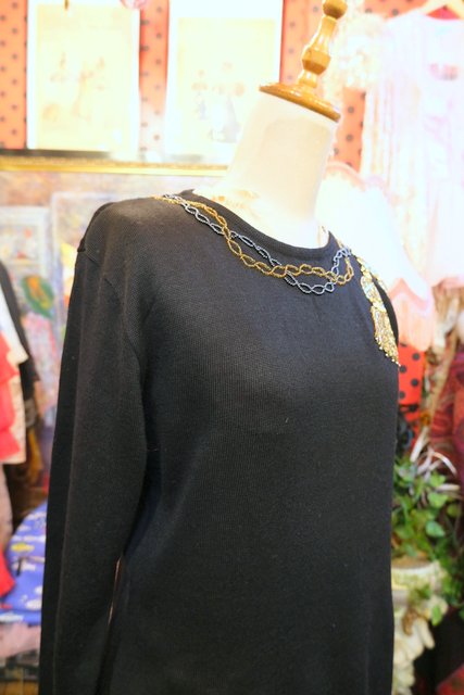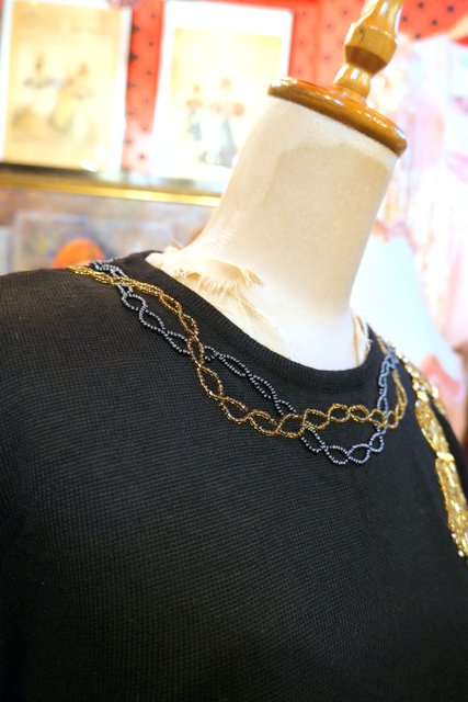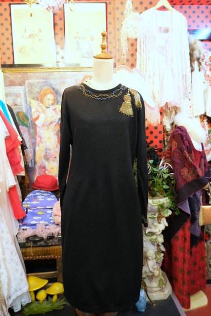 ヨーロッパ古着80s豪華ビジューニットワンピース
