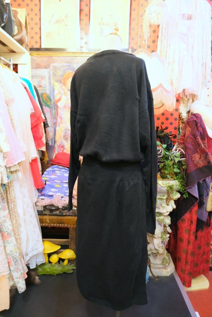 ヨーロッパ古着80s豪華リボンビジューニットワンピース
