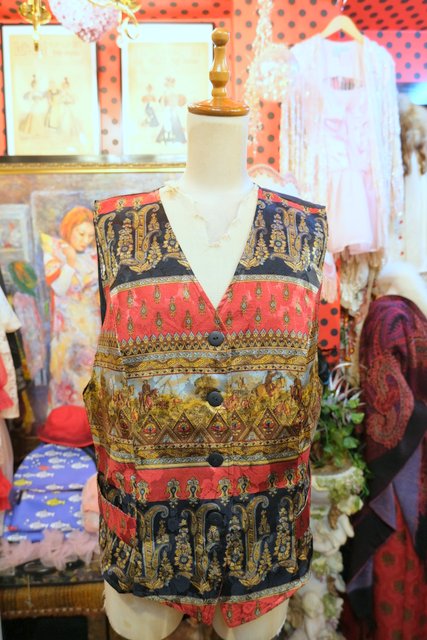 ヨーロッパ古着レトロモダン風景画ベスト