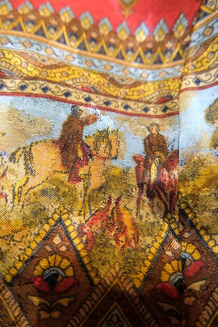 ゴージャスな乗馬用の鞍や拍車などのプリントにレトロボタンがお…