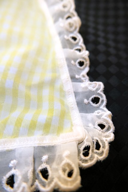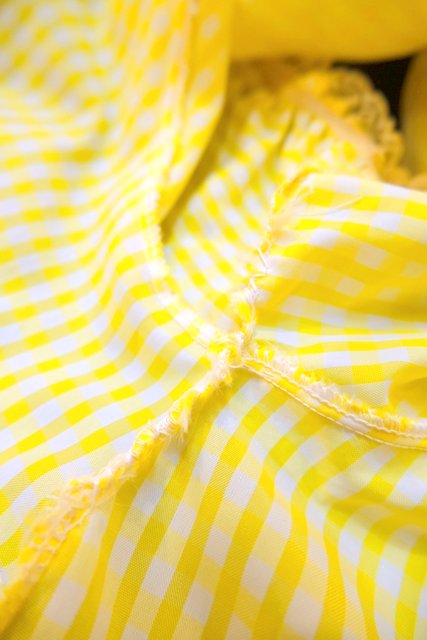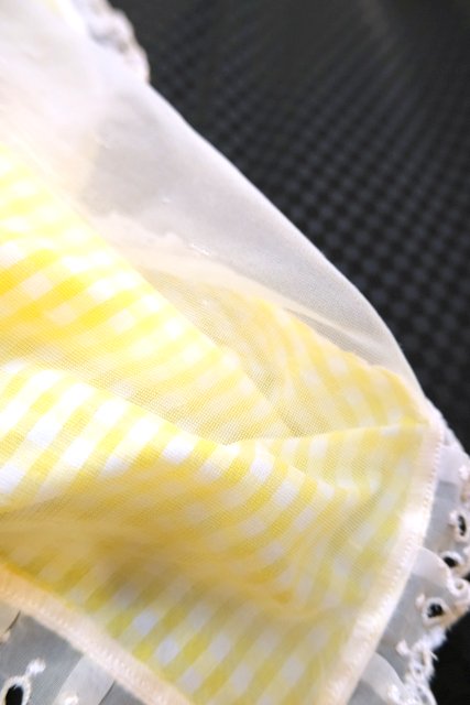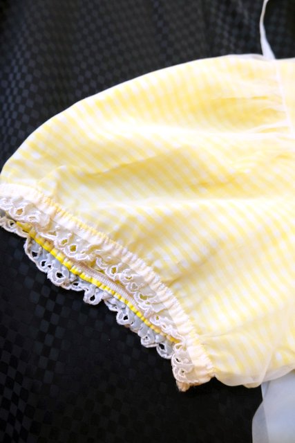 黄色×白のギンガムチェックと薄いピンク色のシフォン生地のロマンティックなレイヤードデザインが魅力的な1970年代頃のヨーロピアンヴィンテージネグリジェ
