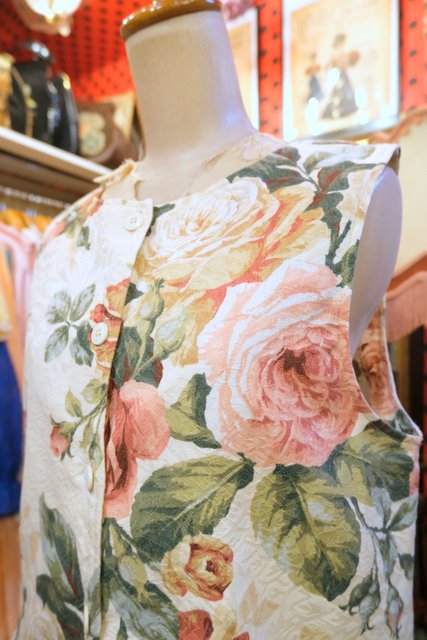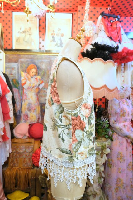 ヨーロッパ古着エレガントガーリー薔薇レースベスト