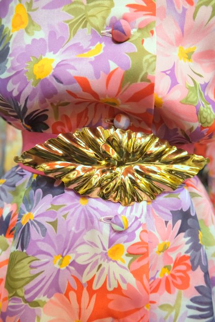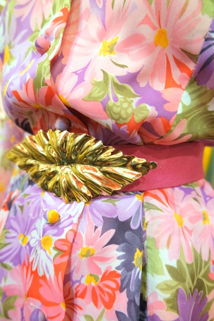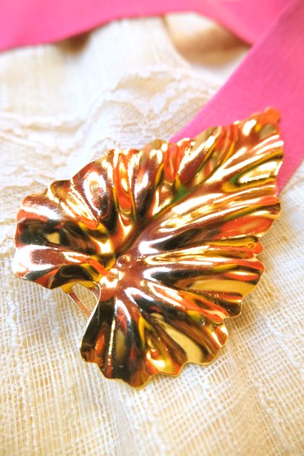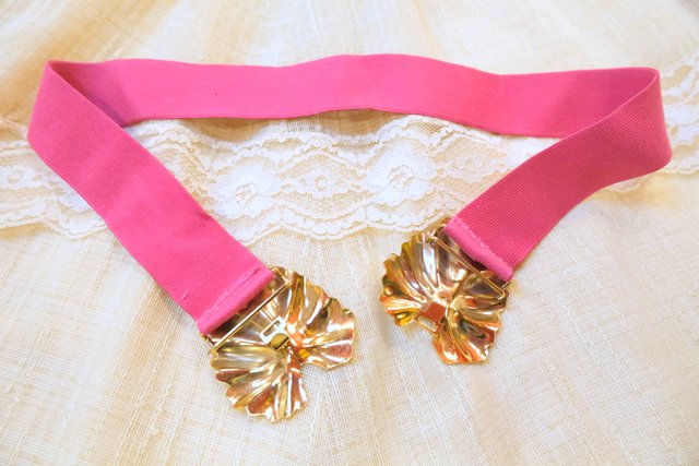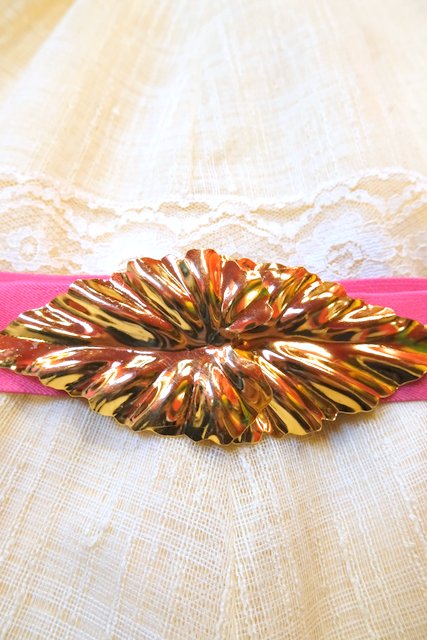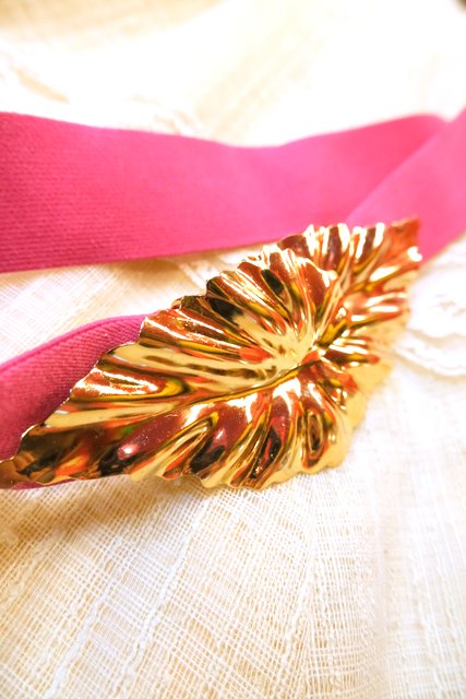 インパクトたっぷりのゴールドリーフデザインバックルにポップなピンクラバーが可愛らしいヨーロピアンウエストマークベルト
