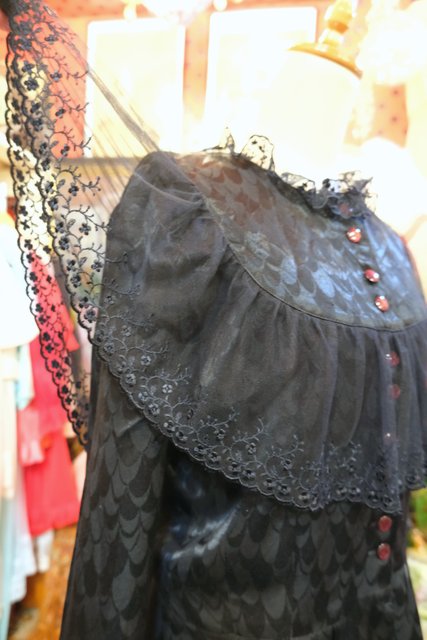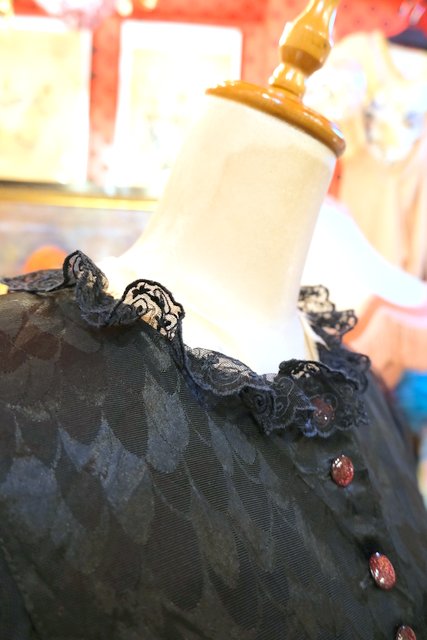 ヨーロッパ古着エレガントゴシック黒レースブラウス