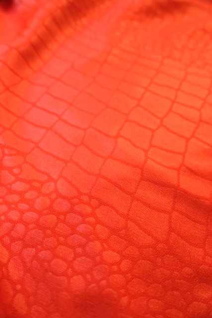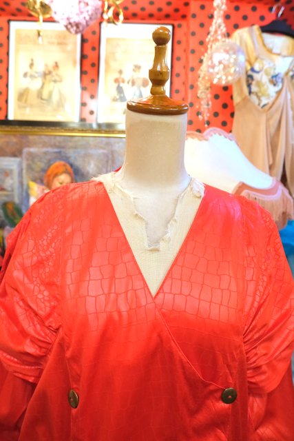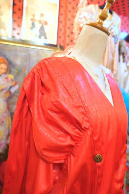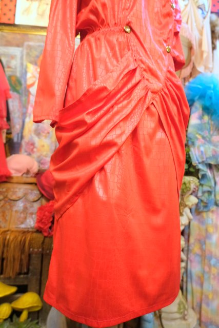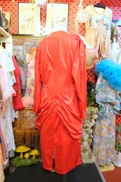 個性的なクロコダイル柄にドレープ感があるボリュームアームやタイトスカートが魅力的な1980年代頃のヨーロピアンドルマンスリーブドレス