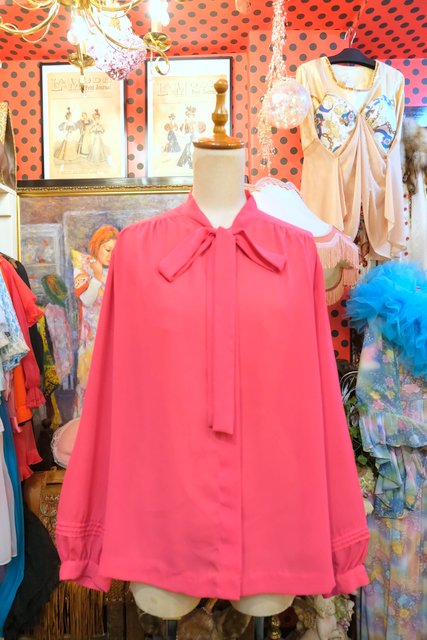 ヨーロッパ古着70sフランス製リボンボウタイブラウス