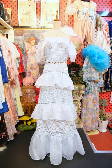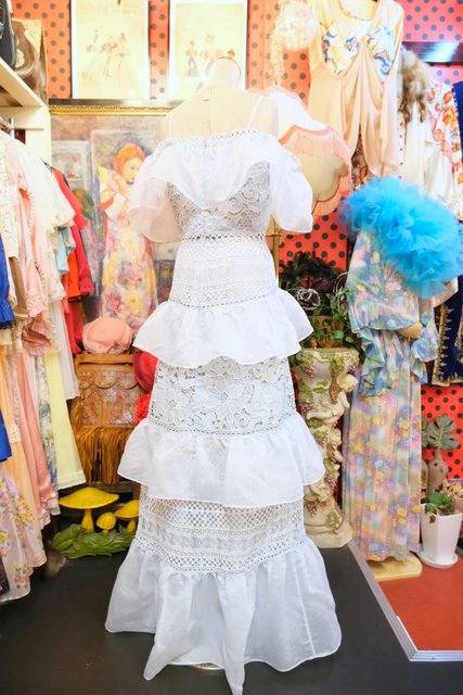 ヨーロッパ古着レースチュールフリルパーティードレス