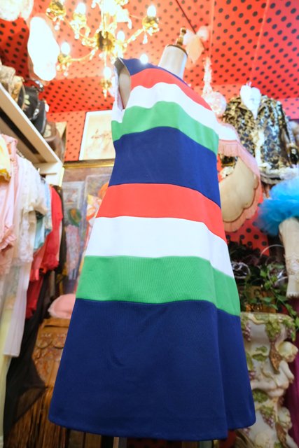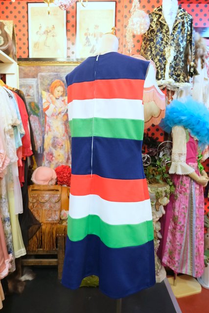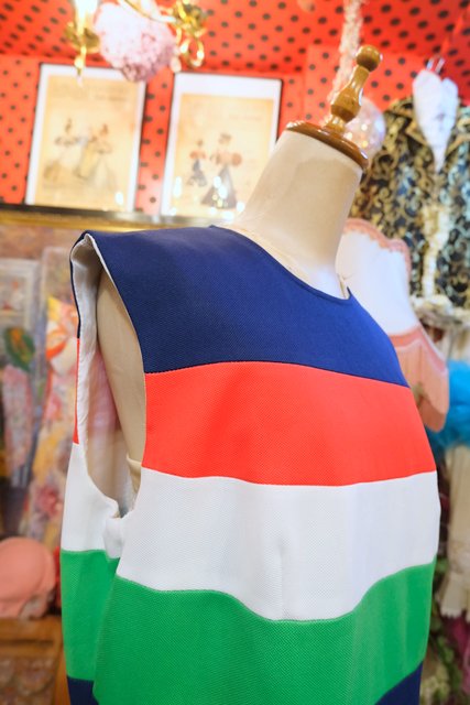 ヨーロッパ古着60sカラフルボーダーモッズワンピース