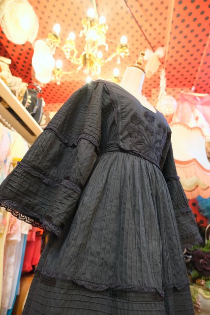 ヨーロッパ古着60sアンティーク花柄刺繍ゴシックドレス