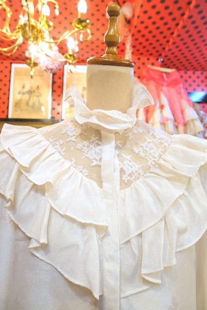ヨーロッパ古着70sヴィンテージレースフリルブラウス