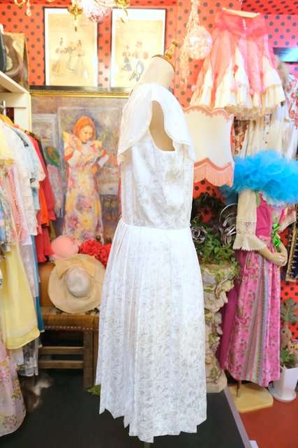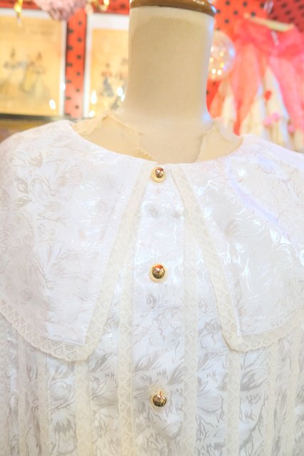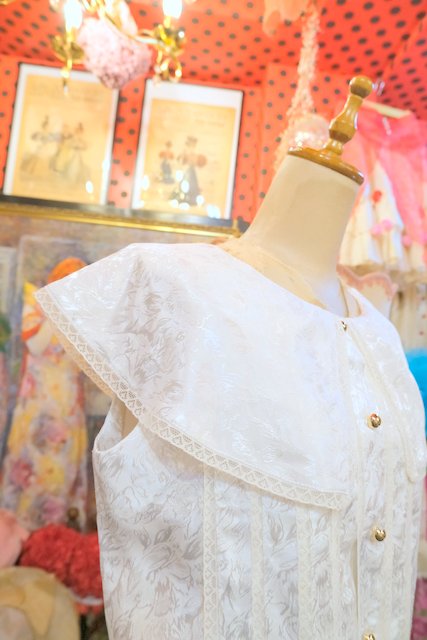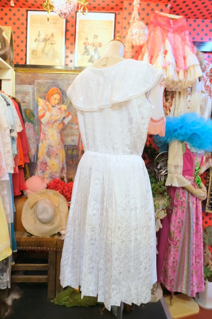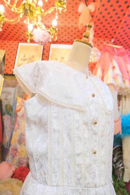 ヨーロッパ古着エレガントガーリー丸襟白ワンピース