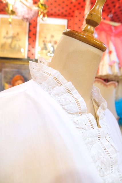ヨーロッパ古着80s花柄刺繍フリル襟チロルブラウス