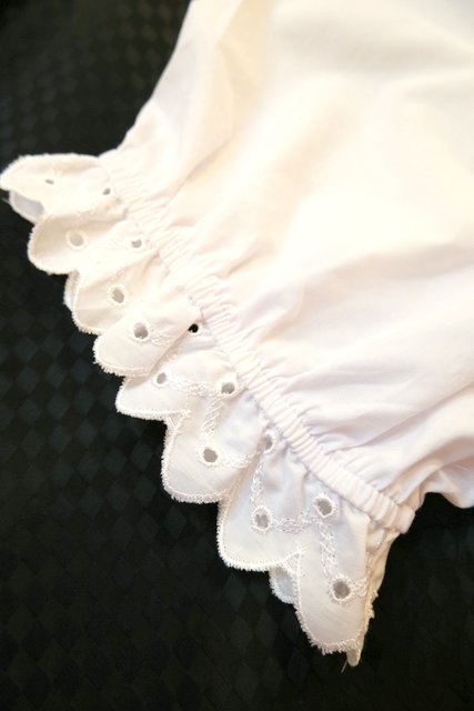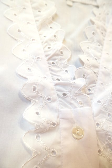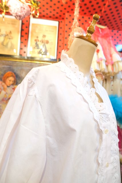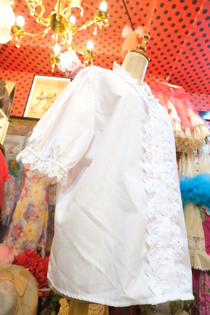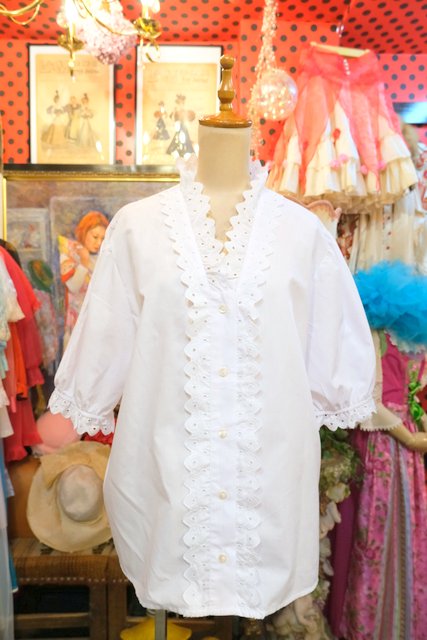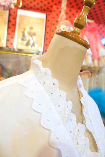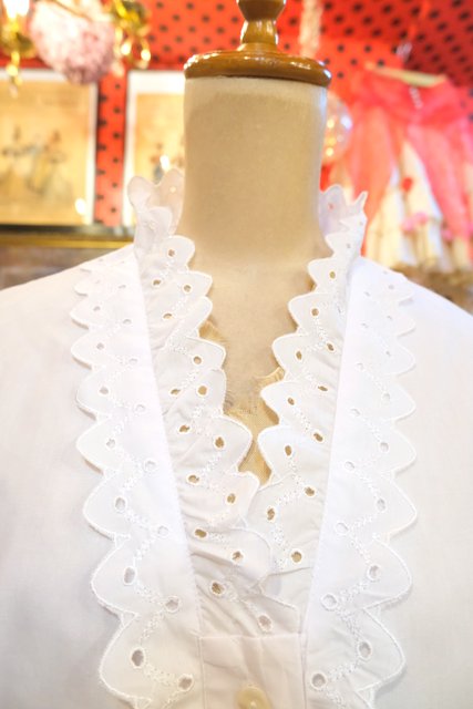 ドット模様のカットワークレーススカラップ襟や前立てデザインが可愛らしい1980年代頃のヨーロピアンチロルブラウス ★SALE★