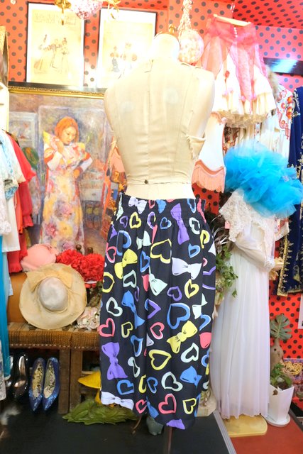 ヨーロッパ古着レトロポップハート×リボンフレアパンツ