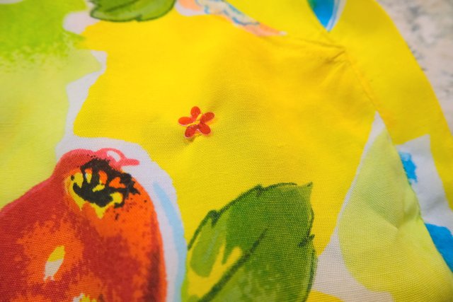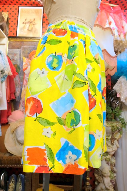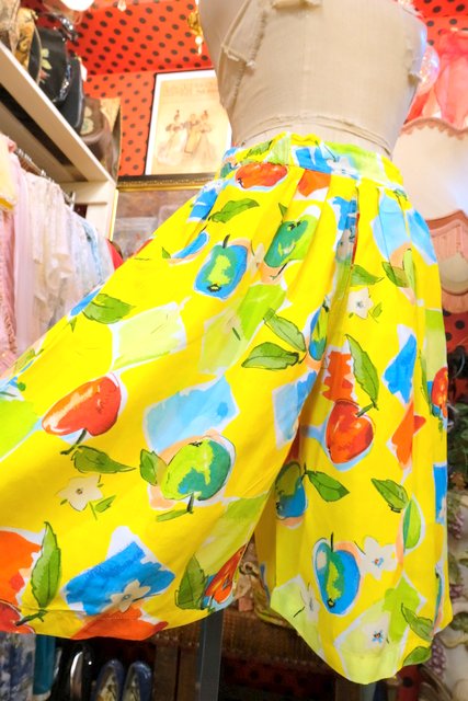 オーバーサイズトップスやトップスインでも可愛いフレアシルエットにレトロポップなアップル柄が可愛らしい1980年代頃のヨーロピアンショートパンツ 海やフェスにおススメ!