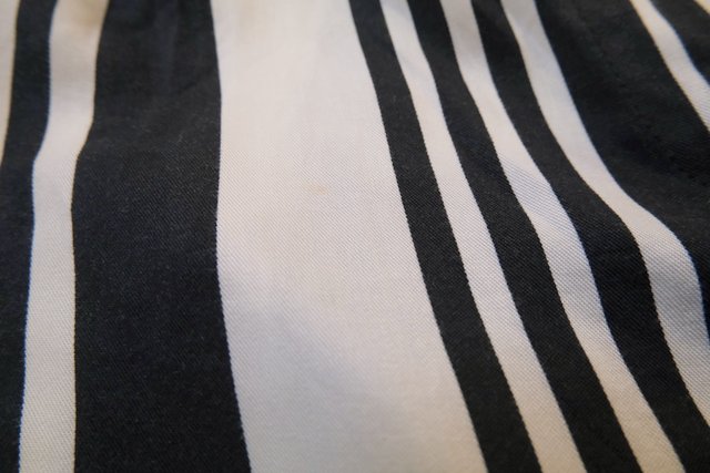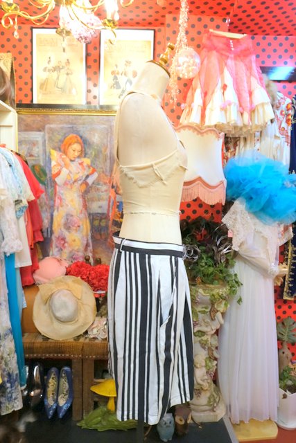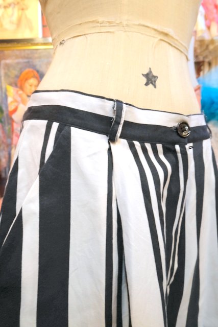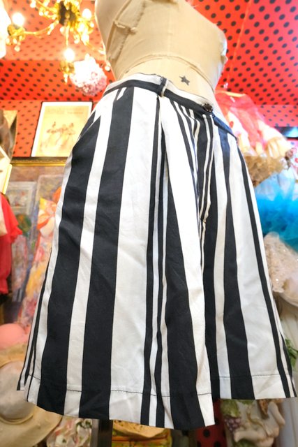 オーバーサイズトップスやトップスインでも可愛いフレアシルエットに白黒モノトーンストライプがカッコいい1980年代頃のヨーロピアンショートパンツ