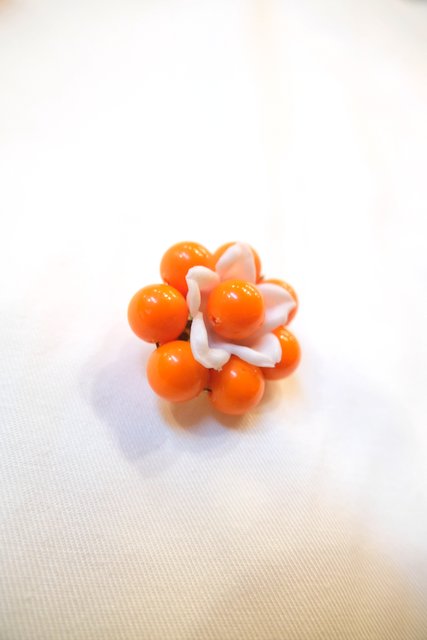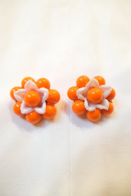 カラフルポップなオレンジベースのお花デザインが可愛らしい1960年代頃のヨーロピアンヴィンテージイヤリング
