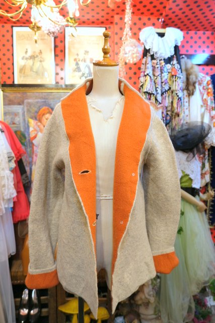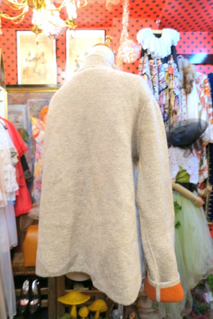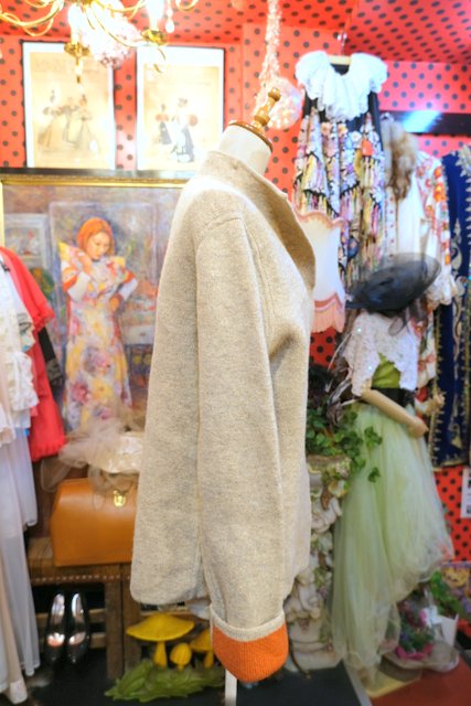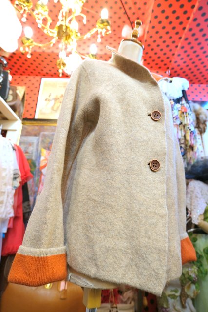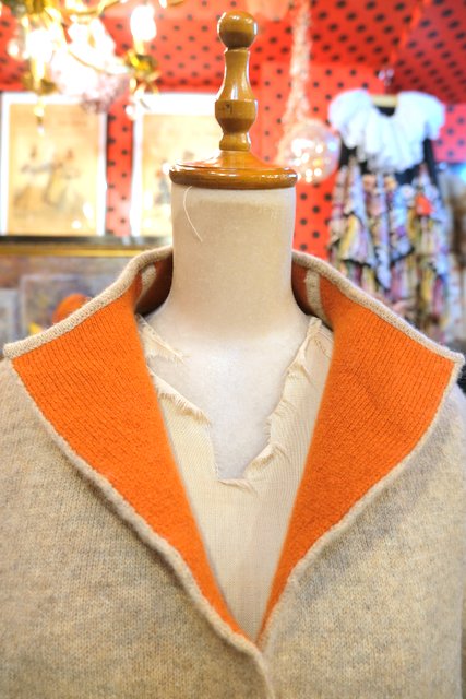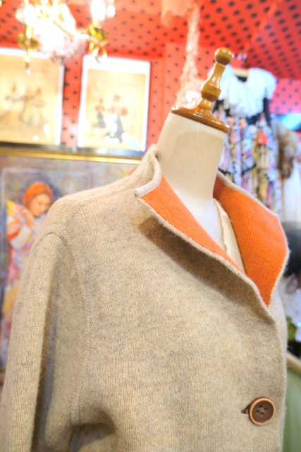 モードなスタンドアウトカラーにベージュ×オレンジの裏地がお洒落なヨーロピアンニットジャケット ★SALE★