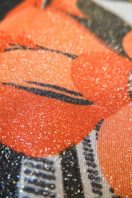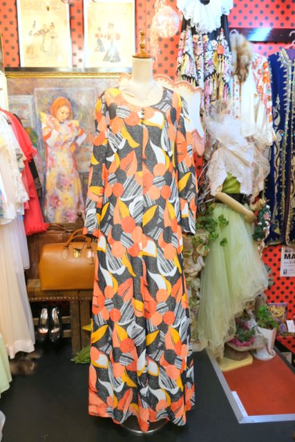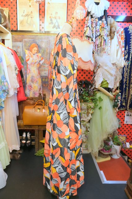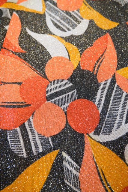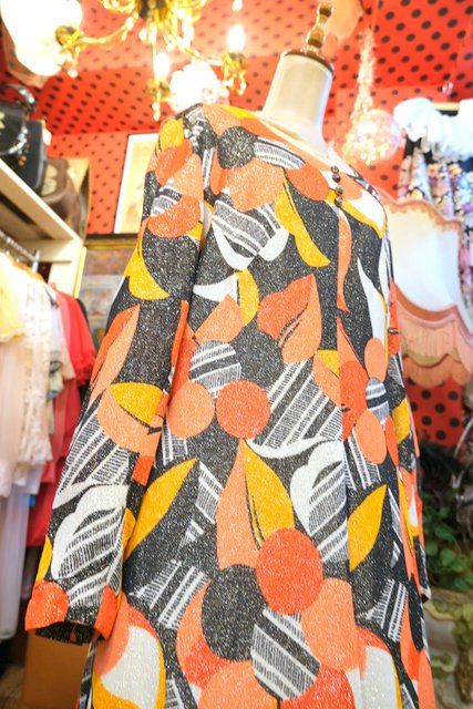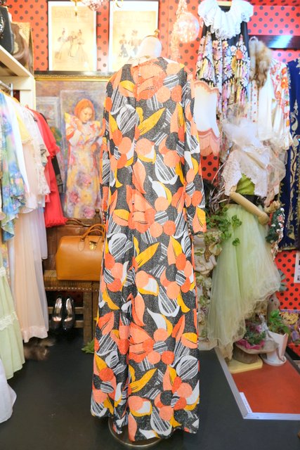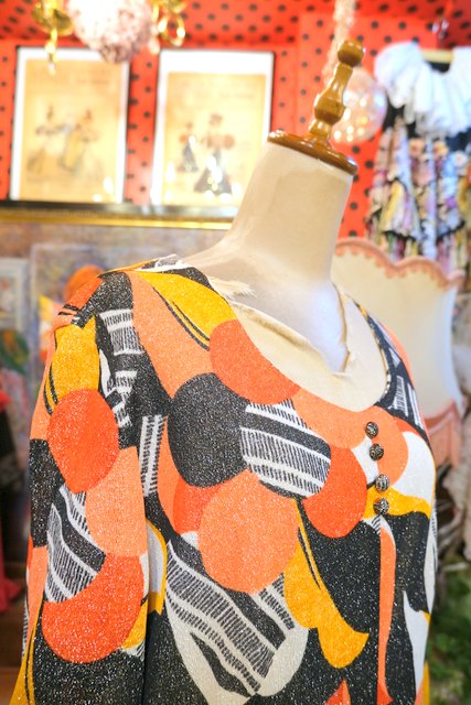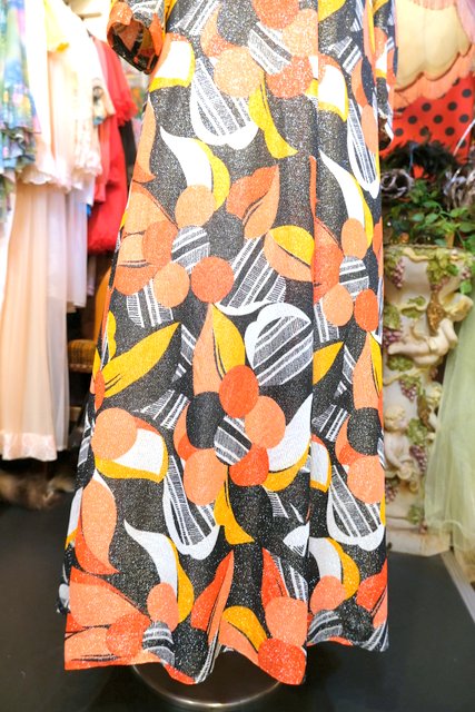 レトロモダンな花柄プリントにキラキラ輝くラメデザインが魅力的な1970年代頃のヨーロピアンヴィンテージパーティードレス