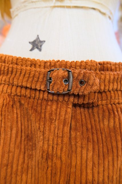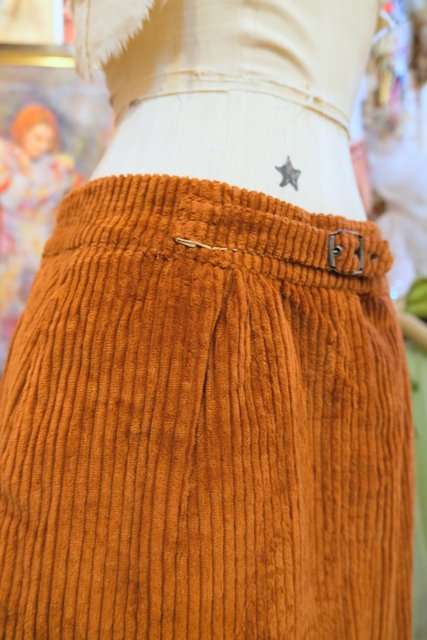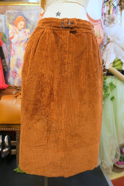 レトロ感たっぷりのコーデュロイ生地にウエストベルトデザインが可愛らしい1970年代頃のヨーロピアンヴィンテージタイトスカート
