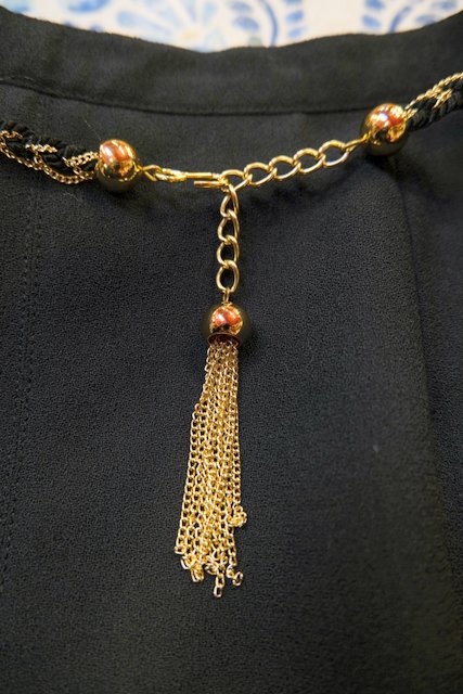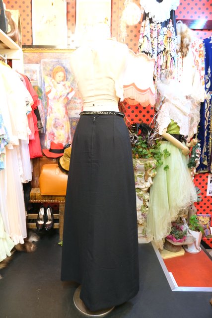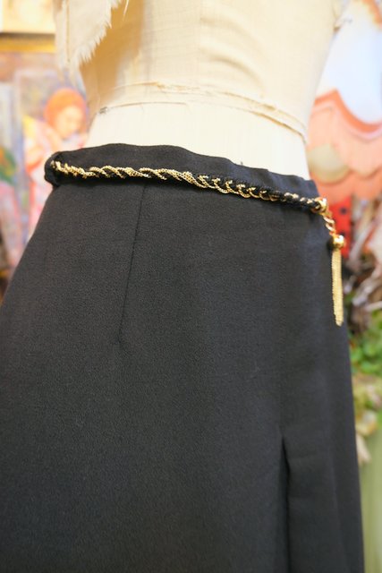 広がりが少ないクールな印象のロング丈にゴールドチェーンベルト付きがカッコいい1970~80年代頃のヨーロピアンヴィンテージスカート