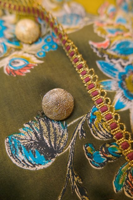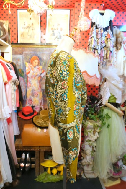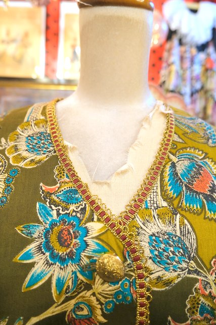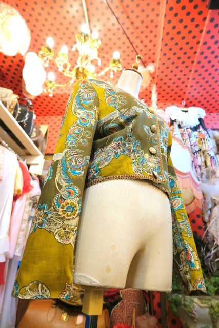 アンティーク感漂う花柄プリント×カーキグラデーションカラーにエレガントなブレードテープが魅力的な1980年代頃のヨーロピアンヴィンテージジャケット