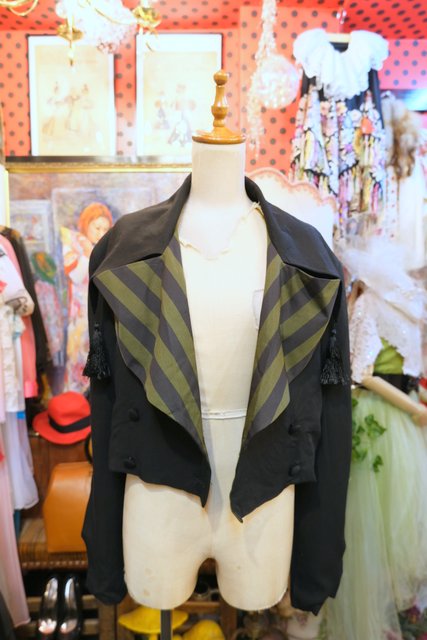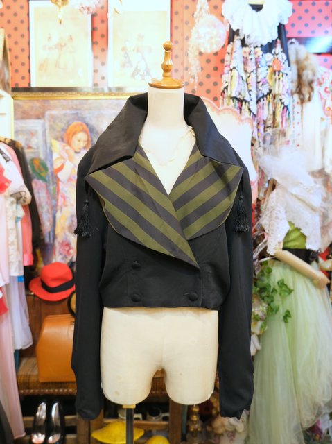ストライプ×フリンジ付きの大きな襟にショート丈がカッコいい1980年代頃のポルトガル製ヴィンテージオーバーサイズジャケット