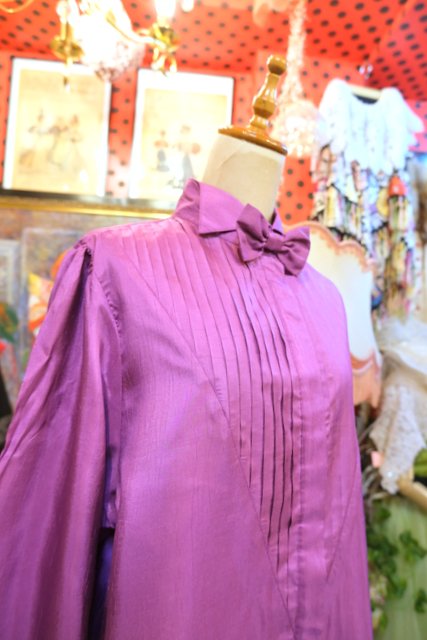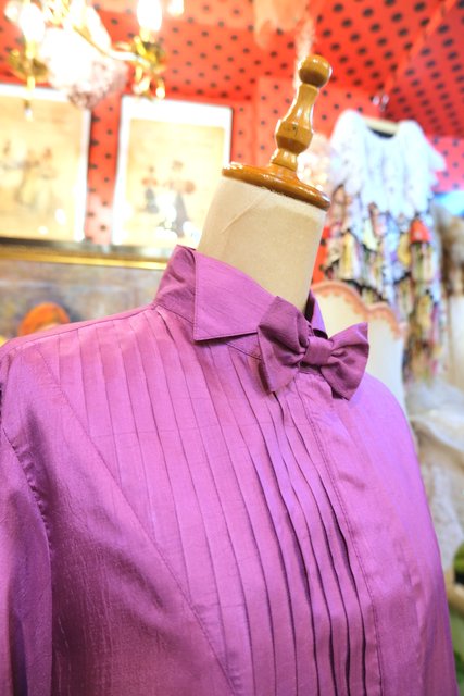 ヨーロッパ古着80sレトロクラシックリボンブラウス