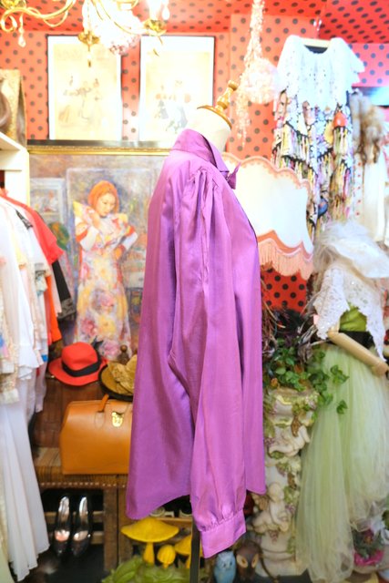 フォーマルな着こなしのウイングカラー×取り外し可能なリボンデザインがお洒落な1980年代頃のヨーロピアンオーバーサイズブラウス