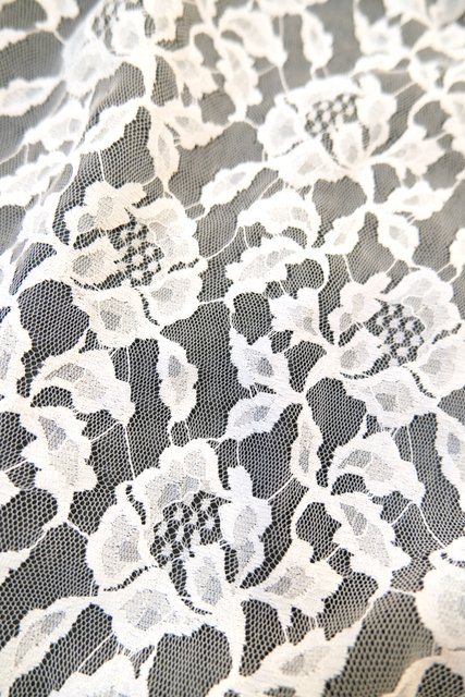エレガントな花柄総レースに透け感があるシフォンレースのラバティンカラーや裾のボリュームフリルデザインが魅力的な1970年代頃のヨーロピアンヴィンテージドレス