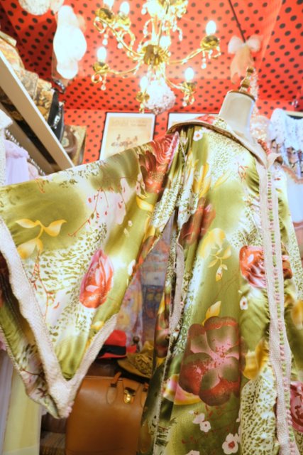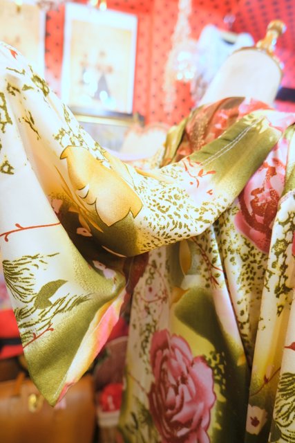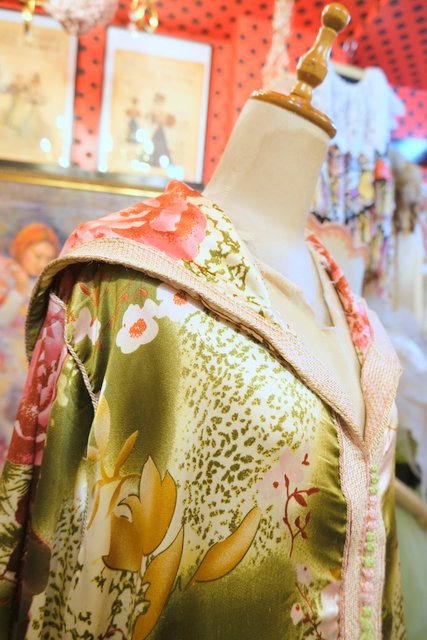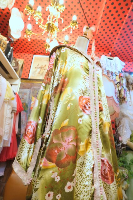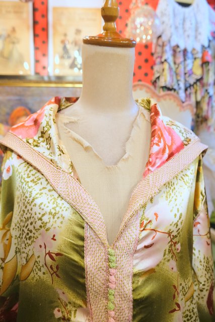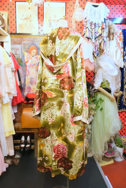 大人エレガントなテロっと感に光沢があるアンティーク花柄模様×フード付きが可愛らしいヨーロピアンヴィンテージワンピース ★SALE★