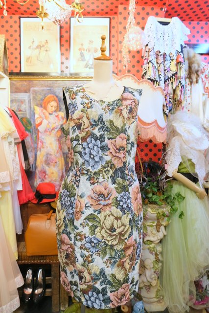 華やかな花柄ゴブラン織りにタイトなシルエットがカッコ可愛い1980年代頃のヨーロピアンレトロワンピース