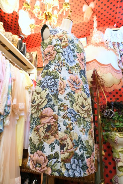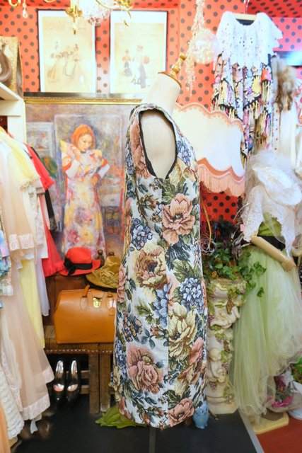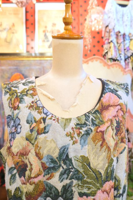 ヨーロッパ古着レトロガーリー花柄ゴブランワンピース