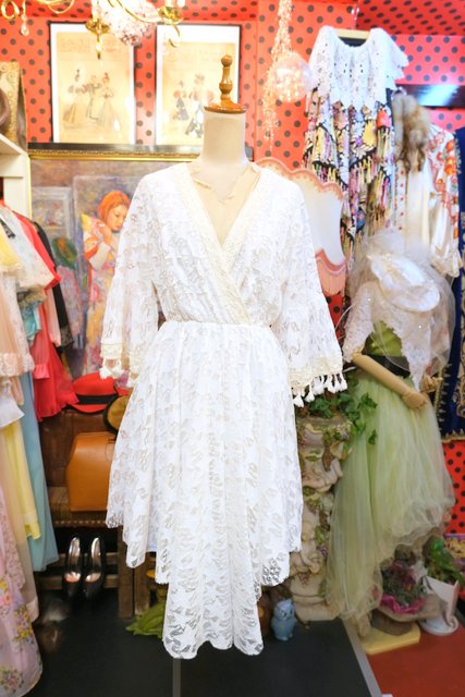 ヨーロッパ古着イタリア製星レースボヘミアンワンピース