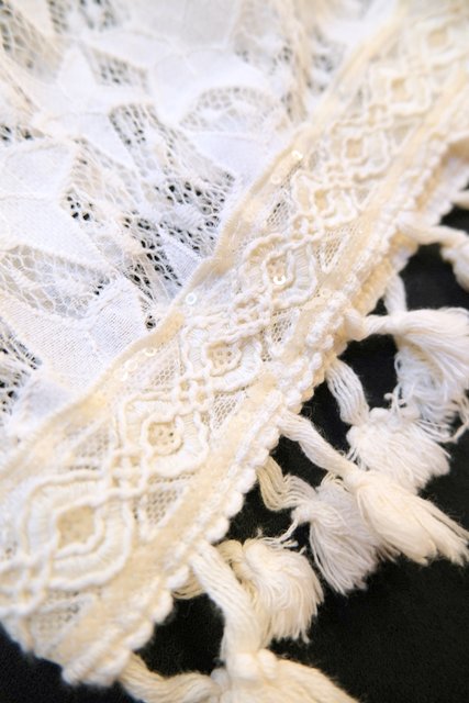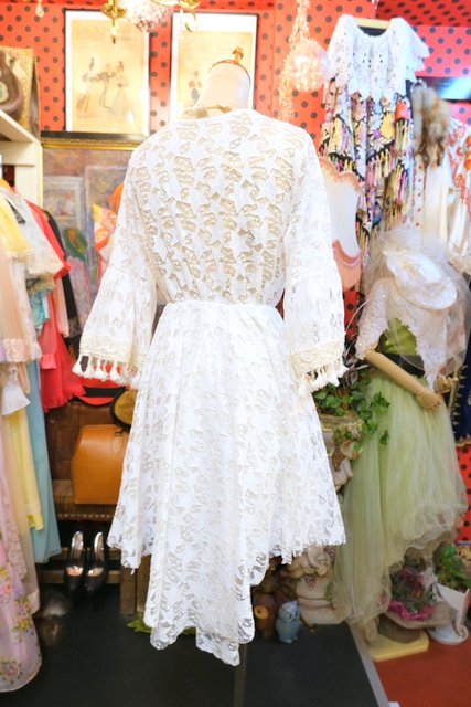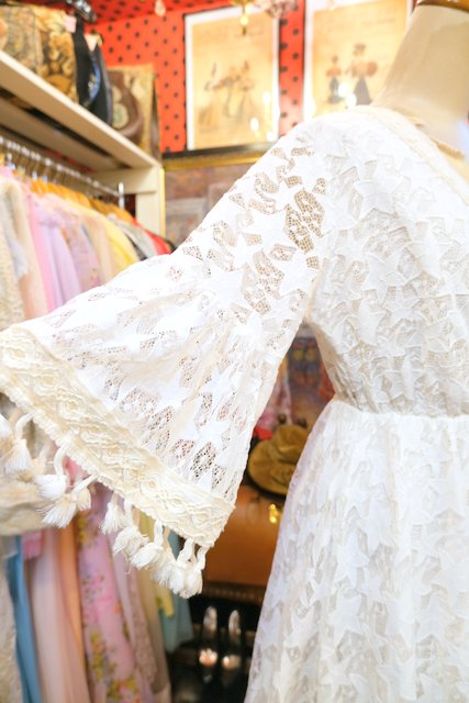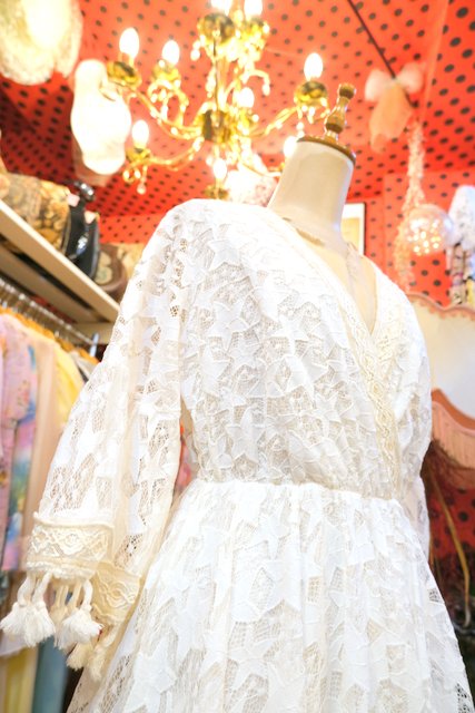 華やかでポップな星レースに袖先の刺繍スパンコールやフリンジデザイン、アシンメトリーなスカートが魅力的なイタリア製レースワンピース