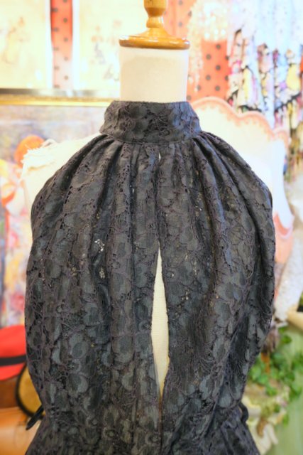 エレガントな花柄総レースに肩から腕にかけてのラインを美しく強調してくれるアメリカンスリーブ×胸元の開きデザインが魅力的な1970~80年代頃のヨーロピアンヴィンテージレースドレス