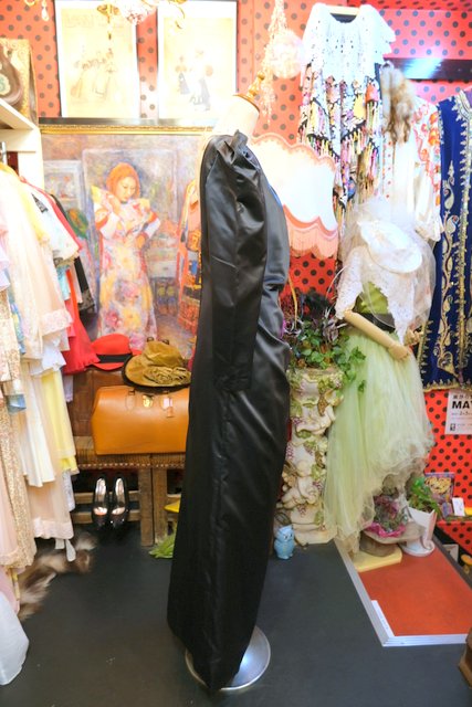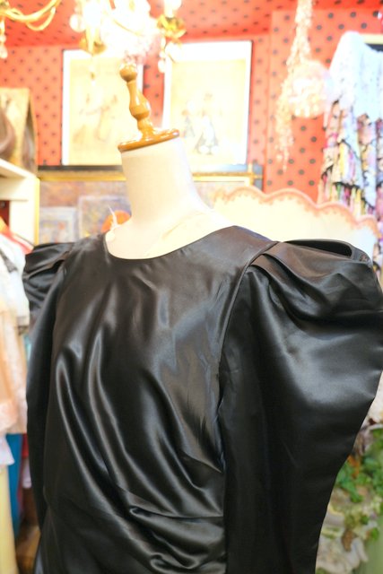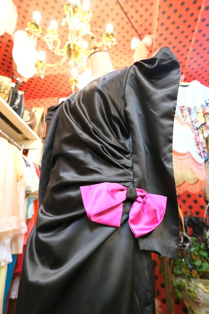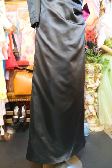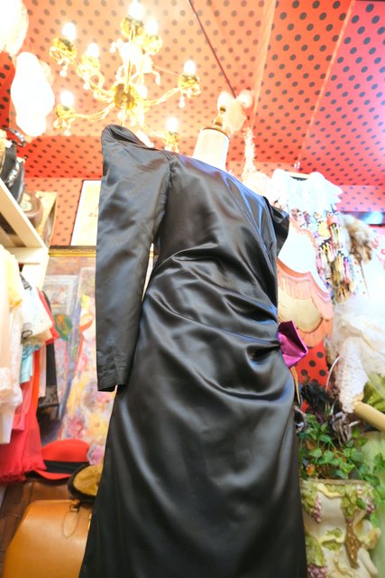 インパクトたっぷりのボリューム感があるパワーショルダーにスリムなロング丈やピンクリボンがカッコ可愛い1970~80年代頃の旧西ドイツ製ヴィンテージパーティードレス