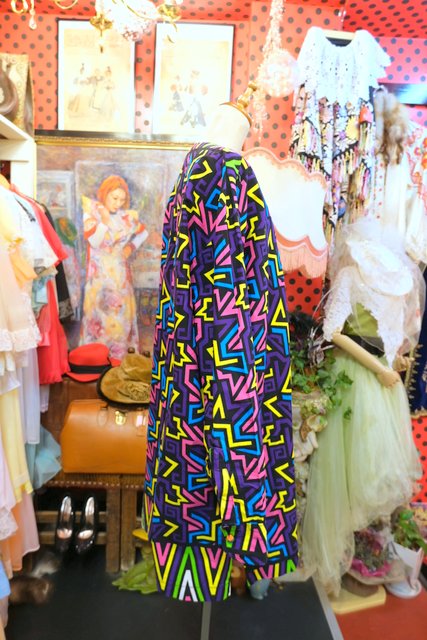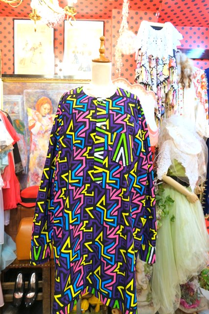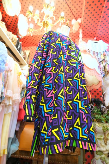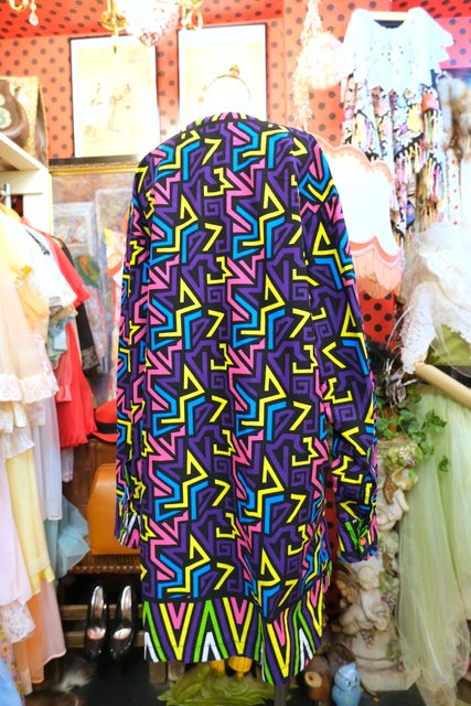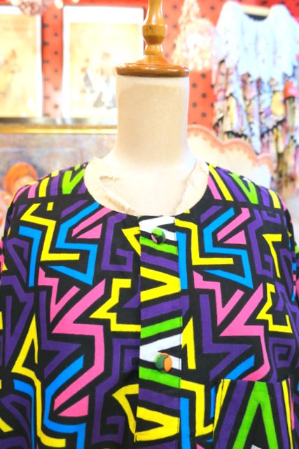 目を惹くカラフルポップなジオメトリック柄にオーバーサイズデザインがカッコ可愛い1980年代頃のヨーロピアンヴィンテージシャツワンピース