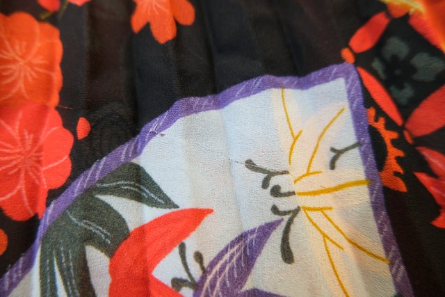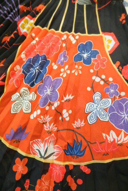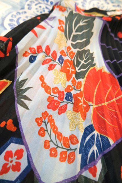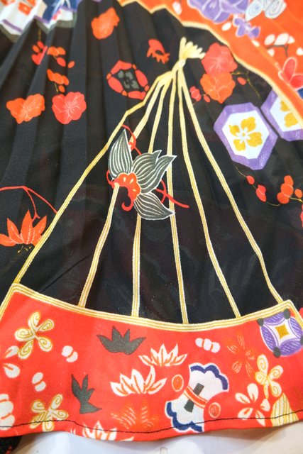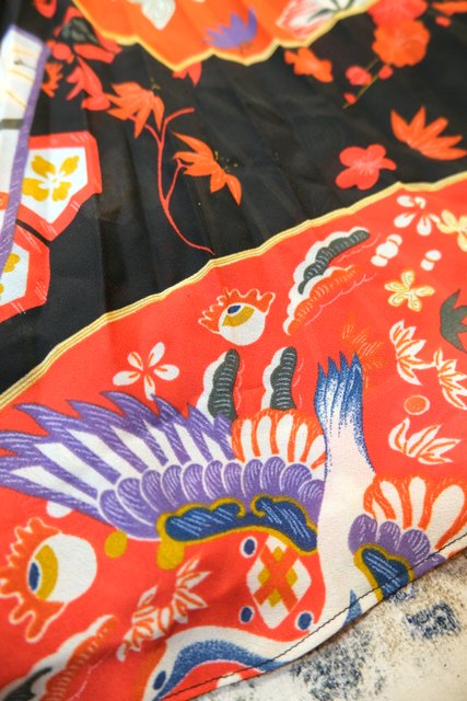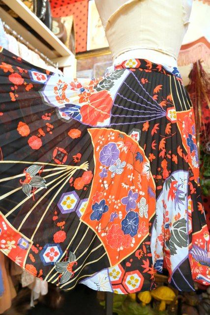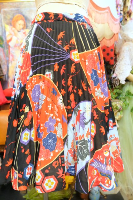 和モダンな梅や扇柄にプリーツデザインがエレガントな1980年代頃のフランス製ヴィンテージスカート ★SALE★