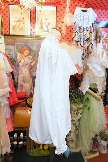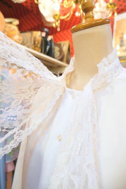 アンティーク感漂う繊細かつ華やかな花柄レースジャボカラーやフリル立ち襟、レースカフスが魅力的な1970~80年代頃のヨーロピアンヴィンテージブラウス