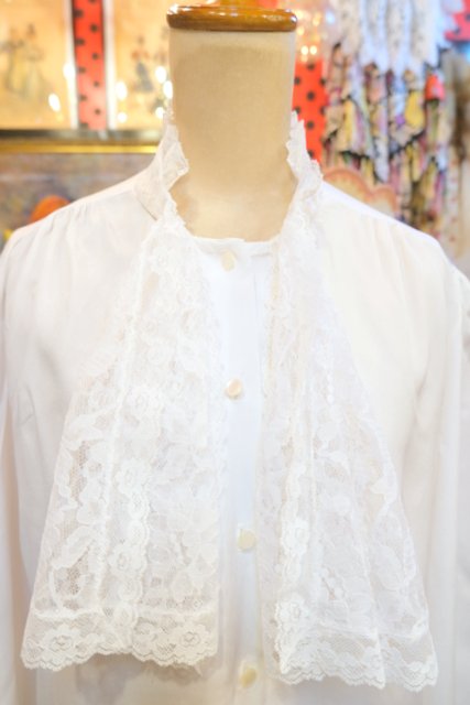 ヨーロッパ古着エレガントレースジャボカラーブラウス