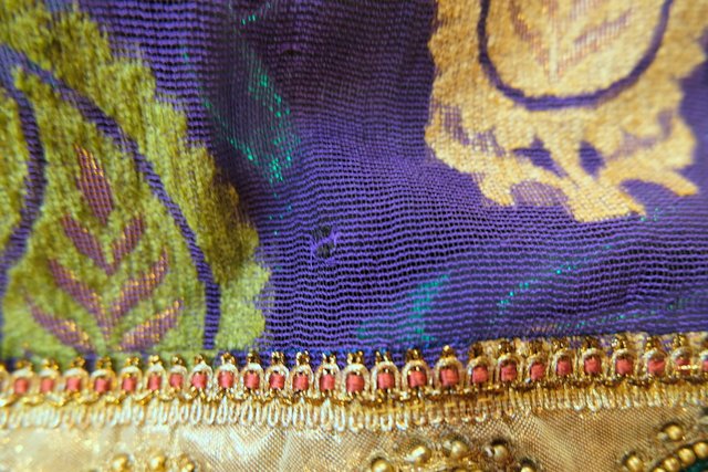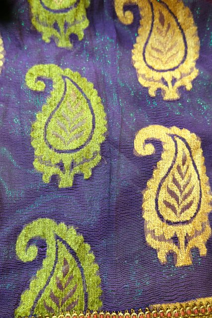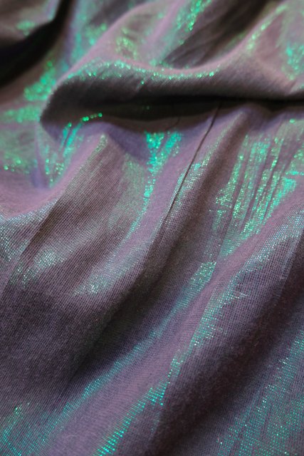 パープルチュールにレトロなリーフ模様のフロッキー加工やゴージャスな刺繍、ビーズミラー装飾、透け感があるチュールから見えるメタリックな裏地がお洒落な1960~70年頃のヨーロピアンヴィンテージスカート