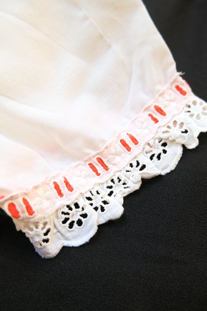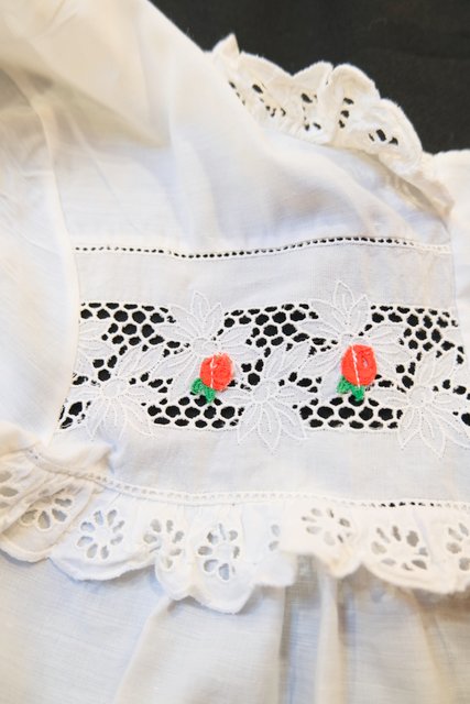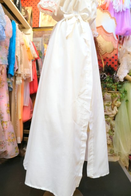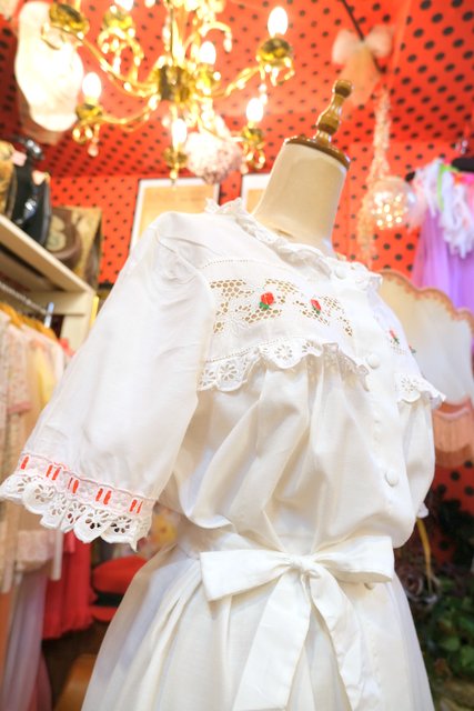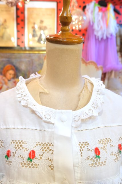 花柄カットワークレースフリル×赤い実が付いた透け感があるレースデザインが魅力的な1970年代頃のヨーロピアンヴィンテージワンピースガウン