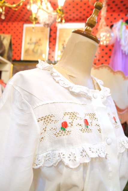 ヨーロッパ古着80sヴィンテージ花柄刺繍チロルブラウス