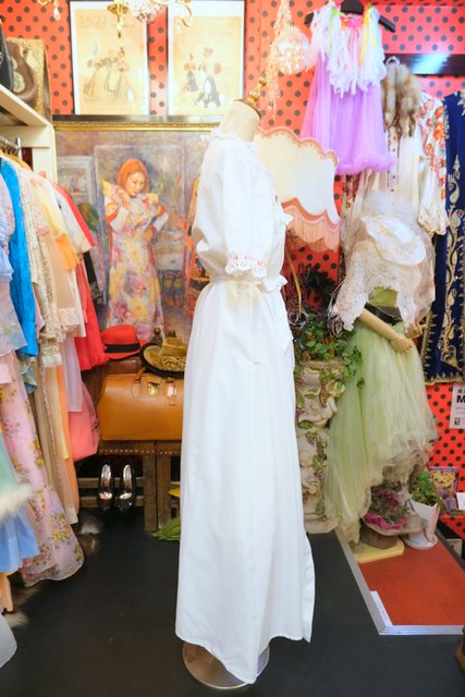 ヨーロッパ古着70sレースフリルワンピース羽織