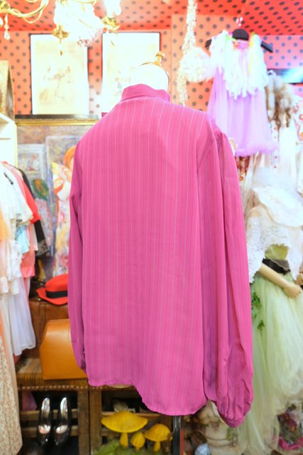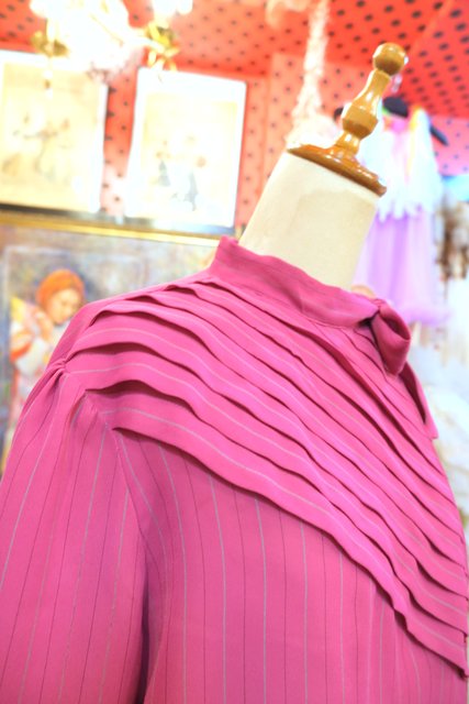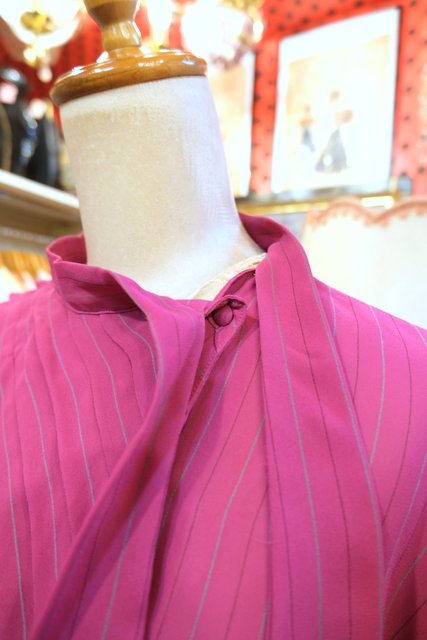 エレガントな印象のリボンデザインにドレープ感があるタック入りが魅力的な1970~80年代頃のシンガポール製ヴィンテージブラウス