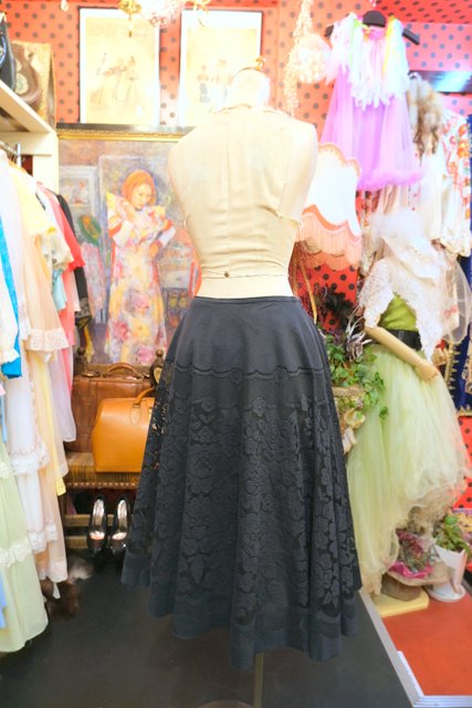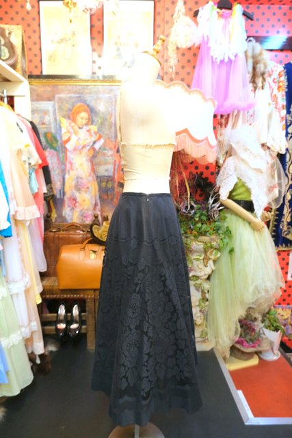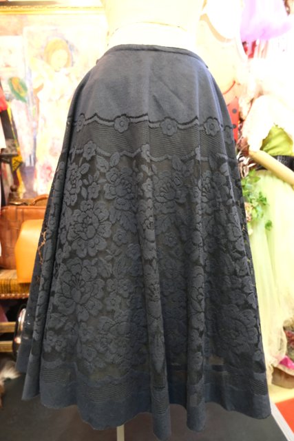 透け感があるエレガントガーリーな花柄レース×フレアデザインが魅力的な1980年代頃のヨーロピアンゴシックスカート