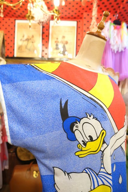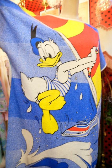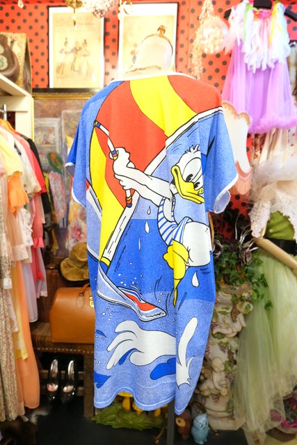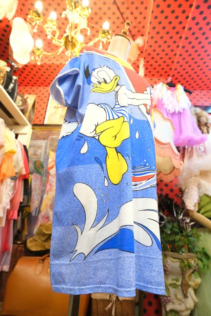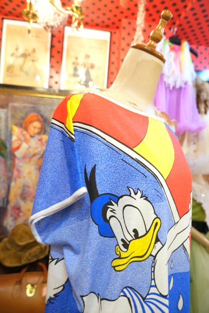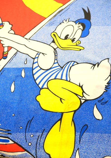 ヨットの乗ったドナルドダックプリントにロング丈のオーバーサイズデザインが可愛らしい1980~90年代頃のヨーロピアンTシャツ