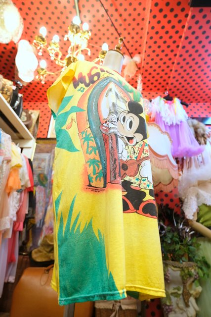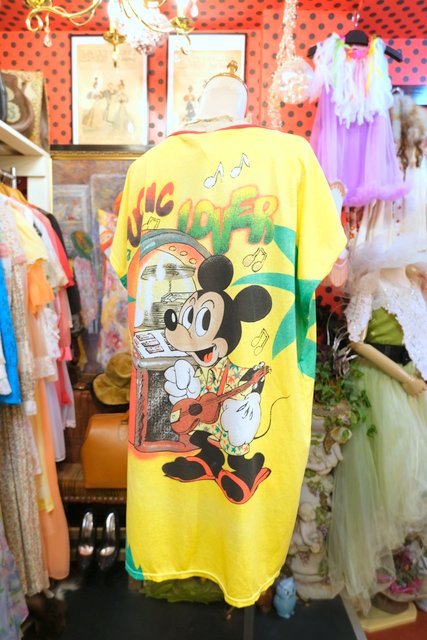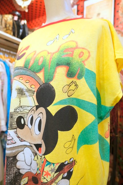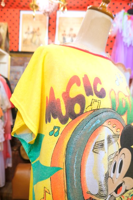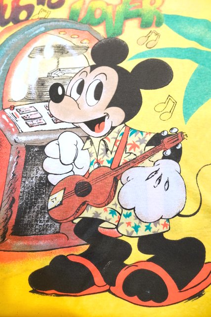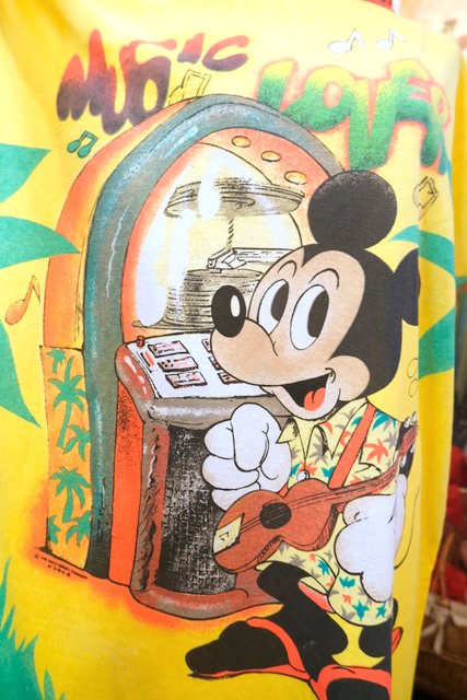 ラスタカラーのMusicLoverミッキープリントが可愛らしい1980年代頃のオランダ製ヴィンテージオーバーサイズTシャツ
