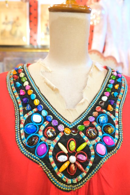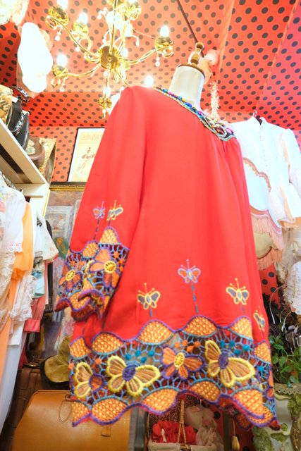 ヨーロッパ古着カラフル装飾蝶刺繍レースチュニック